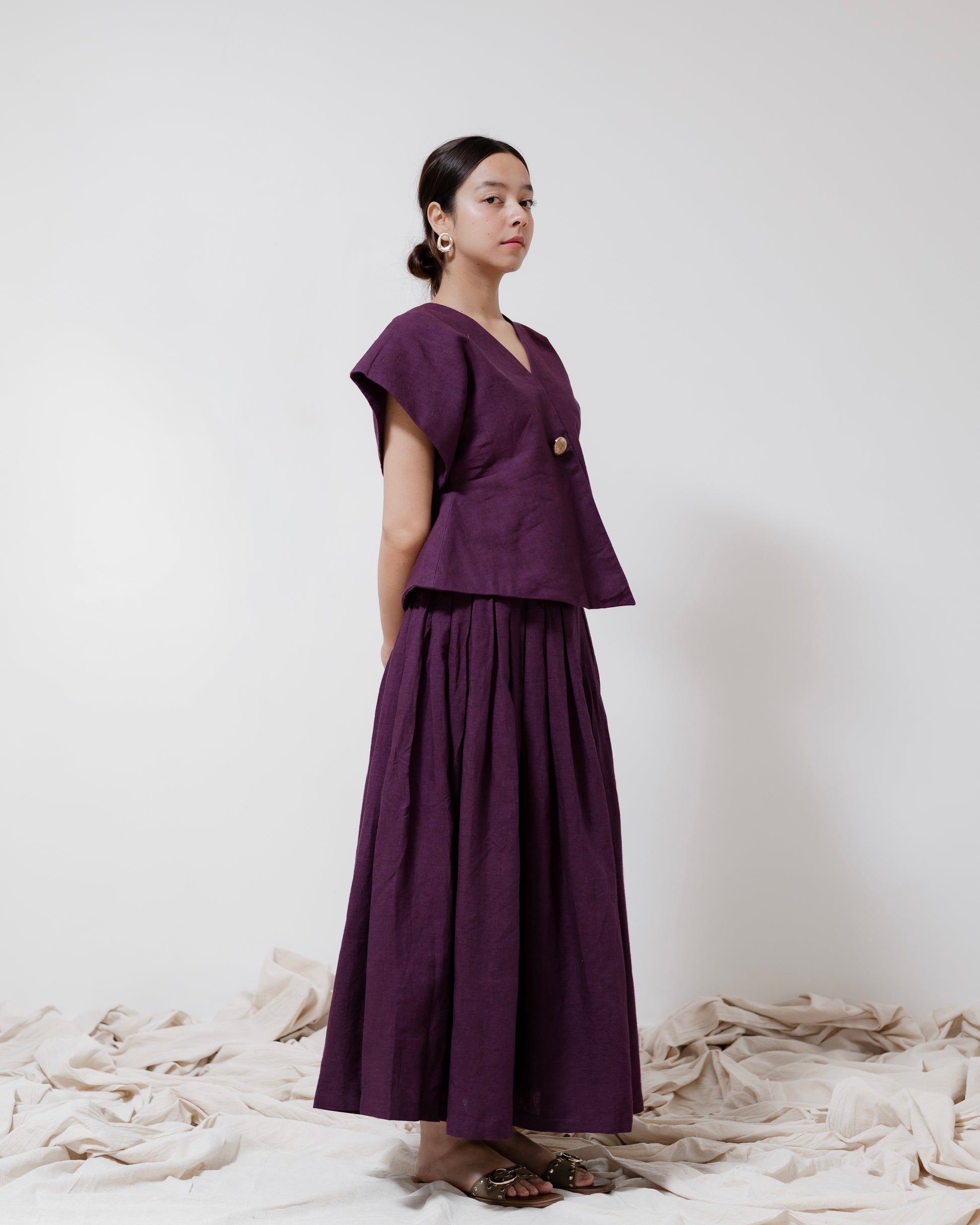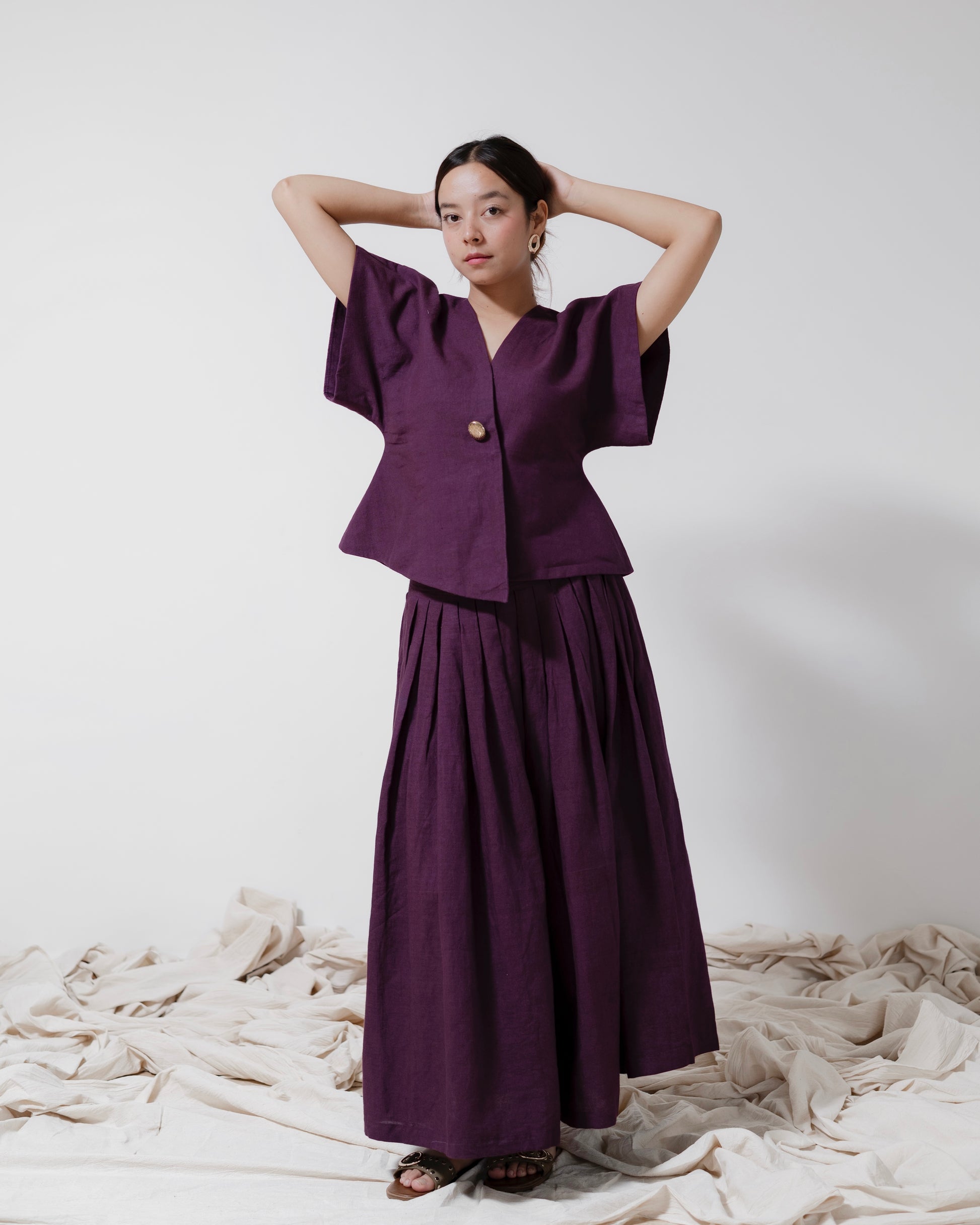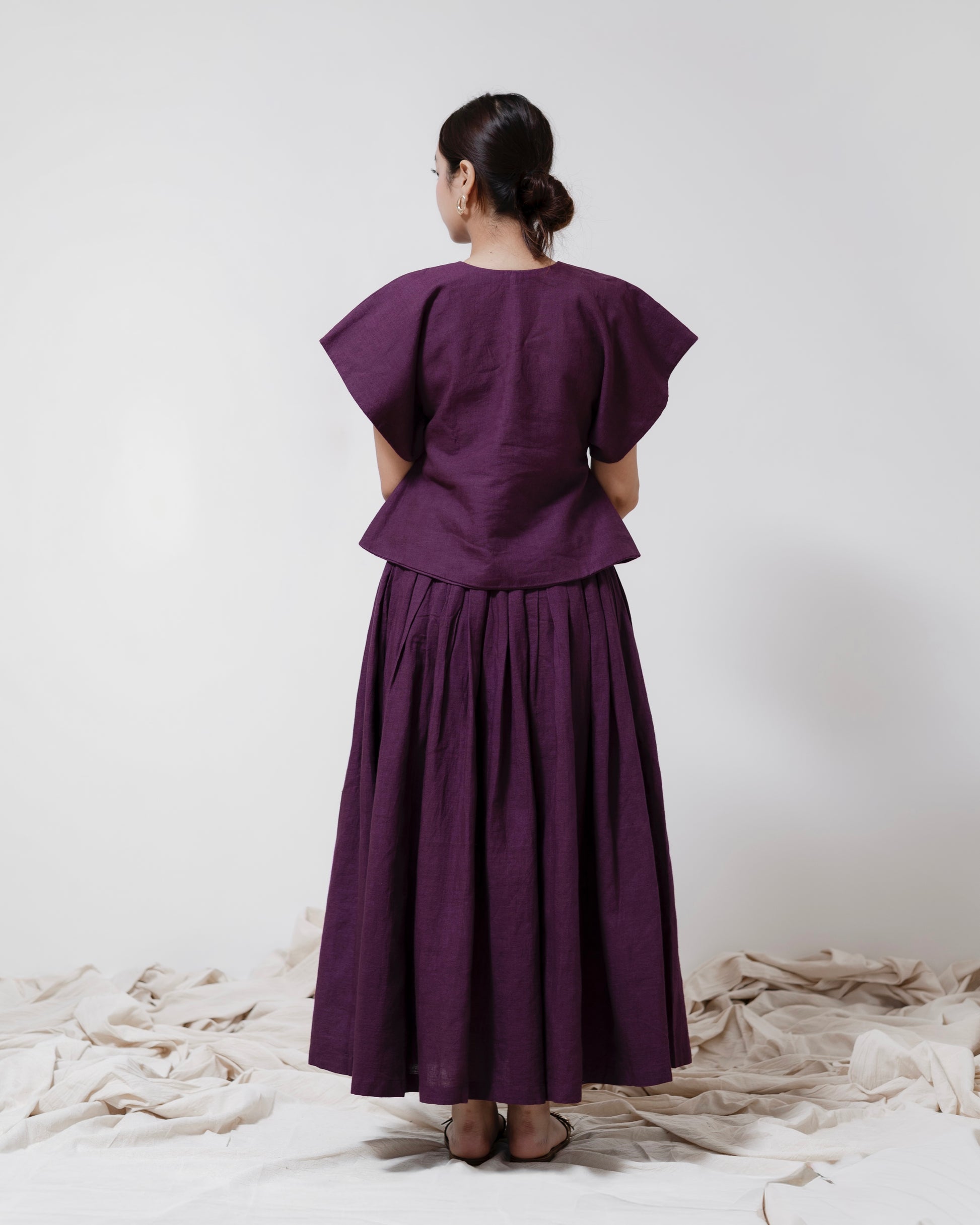 - The skirt, meticulously pleated at the waist, creates a sweeping, dramatic flare that moves gracefully with every step. Wear the set together for a striking statement or style the pieces separately for understated sophistication — a perfect blend of structure, comfort, and artistry.