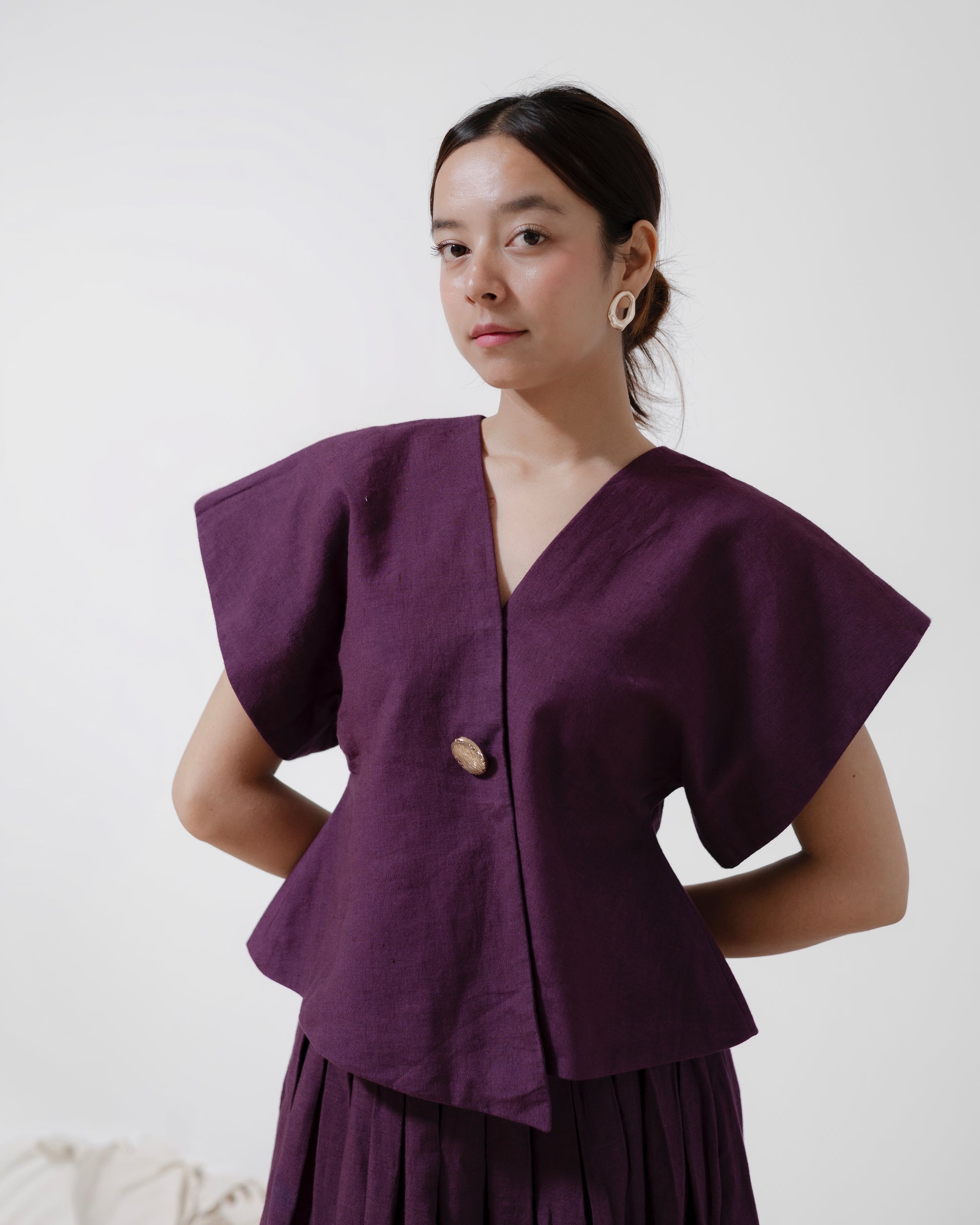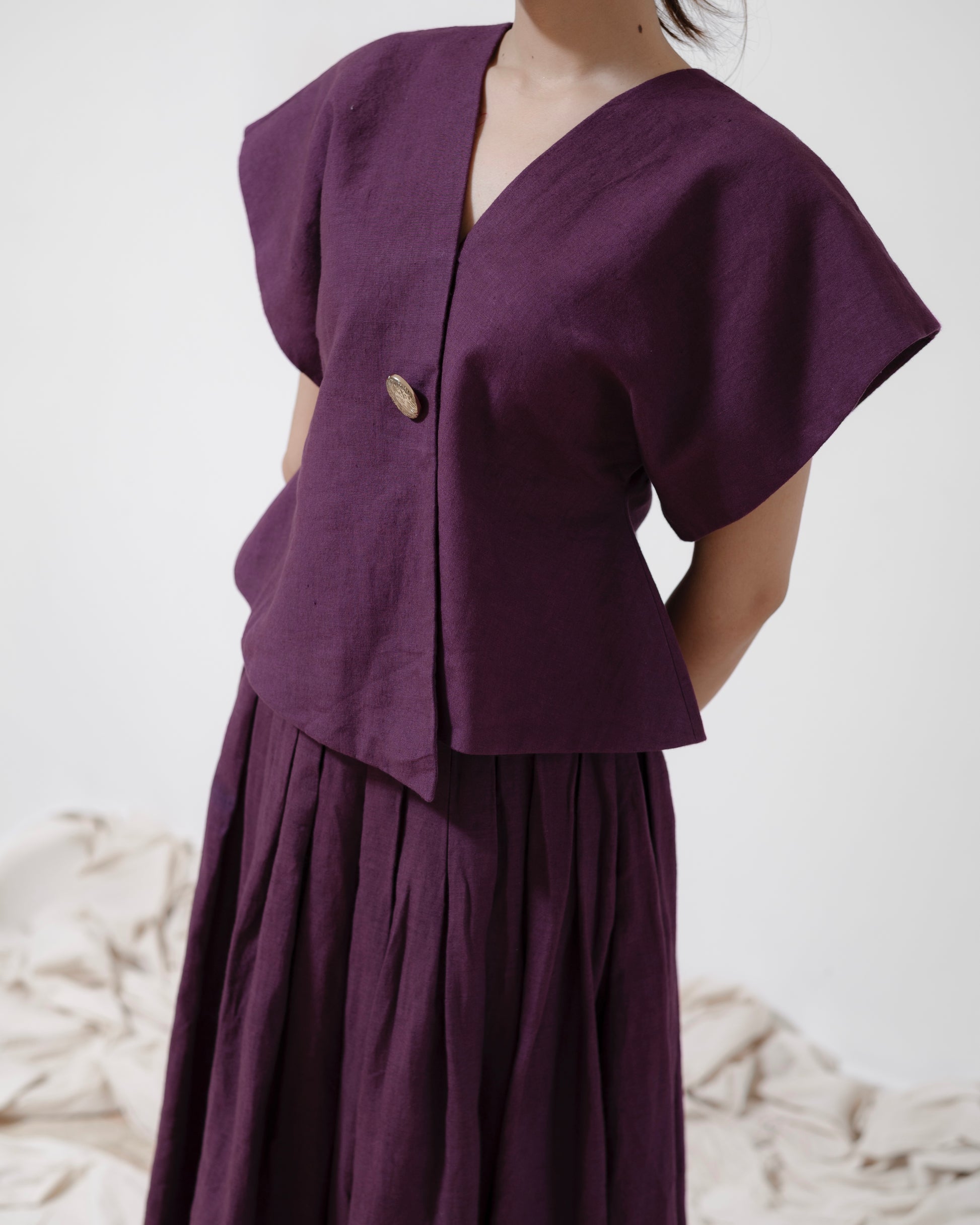 - The ‘Othello’ co-ord set is a celebration of effortless elegance and refined craftsmanship. Made from a soft linen-cotton blend, the top features an anti-fit shoulder and a fitted waist that beautifully enhances the body’s natural shape. Fully lined in the same fabric with precise coat pasting, it’s finished with a bold golden button.